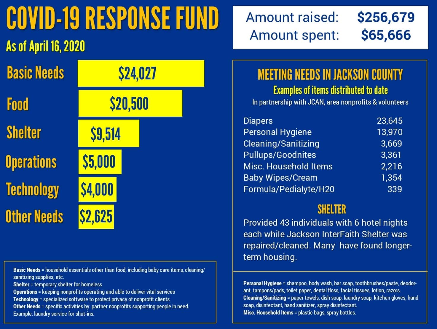 Ken Toll, President and CEO of the United Way of Jackson County, says his organization is encouraged by the quick response and how much money has been raised. However, they know that number will have to grow to meet the community’s increasing demands. “This is one of those slow-rolling crises where we’re learning more about needs everyday. Every time a new issue or need comes up, we realize just how deep and profound this crisis is really impacting us,” Toll said.